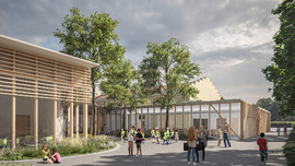 A jelenleg tantermeket magába foglaló, általunk műemlékként kezelt fejépület a funkcionális nehézségek ellenére meghatározó karaktert, utcai „arcot” ad az iskolának, aminek egy modern oktatási intézménybe történő integrálását izgalmas építészeti feladatnak tekintettük. Fontos volt ezért számunkra, hogy az új épületrészek nekonkuráljanak a volt Evva-kastéllyal, hanem szolidabb elemekként megjelenve összességében olyan intézményt hozzunk létre, ami hangsúlyozottan tiszteletben tartja a régi helyi értékeket.